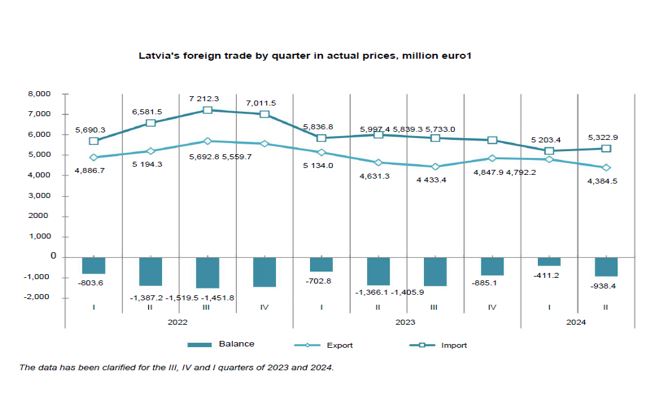 تجارت خارجی لتونی در شش ماهه اول سال 2024