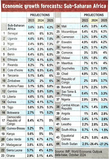 گزارش پایگاه اطلاعات «چشمانداز اقتصادی اکتبر ۲۰۲۴» که صندوق بینالمللی پول روز شنبه 26 اکتبر 2024 منتشر کرده است، بیان میکند که نرخ رشد اقتصادی اوگاندا ۷.۵ درصد خواهد بود و این در حالی است که سنگال با نرخ رشد ۹.۳ درصدی، سریعترین رشد اقتصادی را در منطقه تجربه خواهد کرد. گزارش مزبور نشان میدهد میانگین رشد اقتصادی کشورهای آفریقای جنوب صحرا در سال جاری ۳.۶ درصد بوده و پیشبینی میشود این رقم در سال ۲۰۲۵ به ۴.۲ درصد برسد.
