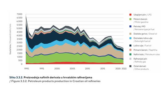جدولهای زیر آماری از بخشی از تولیدات، صادرات و واردات نفت و گاز را در کرواسی نشان می دهد: