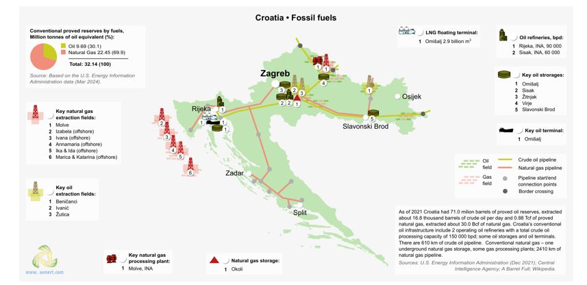 کرواسی سابقه طولانی و غنی در اکتشاف نفت و گاز دارد. زیرساختهای انرژی کرواسی در طول دههها تکامل یافته و شامل پالایشگاههای نفت، میادین گازی فراساحلی و شبکههای خط لوله ای گسترده است. با این حال، با وجود توانمندیهای خوب تامین داخلی انرژی، کرواسی همچنان به واردات انرژی وابسته است.