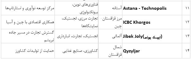 -منطقه ویژه اقتصادی آستانه - شهر جدید با مناطق آزاد تجاری چین و روسیه ارتباط دارد. این همکاریها بیشتر بر تجارت مرزی، صادرات-واردات، و همکاریهای لجستیکی متمرکز است.