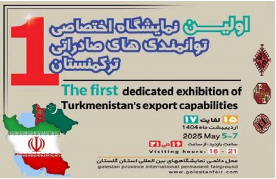 خبرگزاری ترکمن پورتال: اولین نمایشگاه توانمندیهای صادراتی ترکمنستان در مرکز نمایشگاههای بینالمللی استان گلستان آغاز به کار کرد. به گزارش صفحه رسمی رسانههای اجتماعی سفارت ایران در عشقآباد، هدف از این رویداد معرفی پتانسیلهای فنی، صنعتی، خدماتی، کشاورزی و صادراتی دو کشور است.