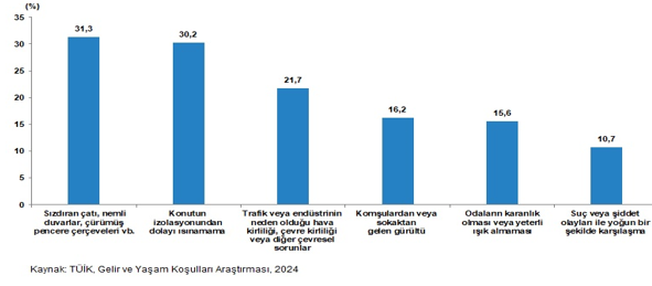 بر اساس نتایج بررسی درآمد و شرایط زندگی، هنگامیکه وضعیت مالکیت خانه در سال ۲۰۲۴ بررسی شد، مشاهده شد که ۵۶.۱ درصد از افراد مالک خانهای بودند که در آن زندگی میکردند، در حالی که ۲۸ درصد مستاجر بودند. میزان کسانی که در اقامتگاهها زندگی میکردند ۰.۹ درصد بود، میزان کسانی که در خانه خود زندگی نمیکردند و اجاره نمیپرداختند ۱۵ درصد بود.
