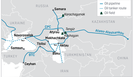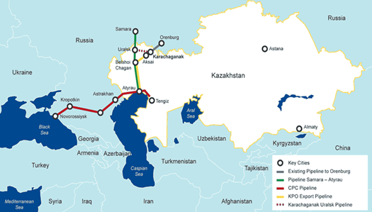 مسیرهای صادارتی نفت قزاقستان به شرح زیر میباشد: