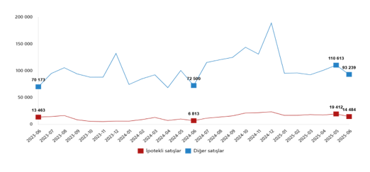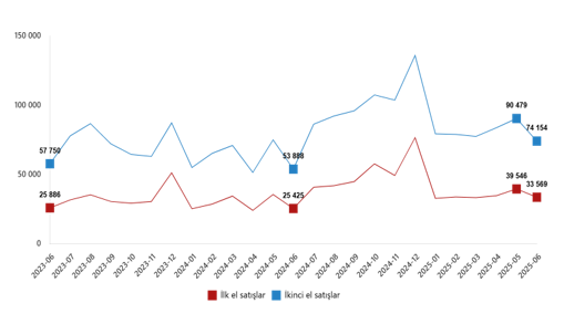 تعداد فروش خانههای دست اول به ۳۳,۵۶۹ رسید. تعداد فروش خانههای دست اول در سراسر ترکیه در ماه ژوئن در مقایسه با ماه مشابه سال قبل ۳۲.۰ درصد افزایش یافت و به ۳۳,۵۶۹ رسید. سهم فروش خانههای دست اول در کل فروش خانه ۳۱.۲ درصد بود. در دوره ژانویه تا ژوئن، فروش خانههای دست اول در مقایسه با مدت مشابه سال قبل ۱۹.۸ درصد افزایش یافت و به ۲۰۷,۶۲۴ رسید.