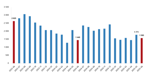 فروش خانه، ژوئن ۲۰۲۵ (تعداد)