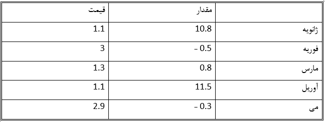 جدول مقدار واردات و تغییرات در قیمت واردات ( % )