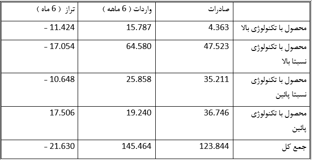 رکود محصولات تکنولوژیک در تجارت محصولات صنعتی ( میلیون دلار )