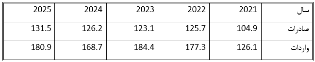 جدول تجارت خارجی 6 ماهه نخست ترکیه در سالهای 2021 الی 2025 ( میلیارد دلار )