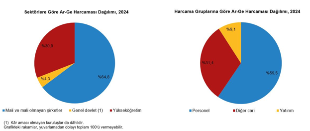از ۴۲۲ میلیارد و ۳۰۷ میلیون لیر ترکیه که از سوی شرکت‌های مالی و غیرمالی در سال ۲۰۲۴ انجام شده، ۵۲.۷٪ در مراکز تحقیق و توسعه انجام شده است. ۸۹.۴٪ از هزینه‌های تحقیق و توسعه در مراکز تحقیق و توسعه از سوی شرکت‌هایی با ۲۵۰ کارمند یا بیشتر انجام شده است.