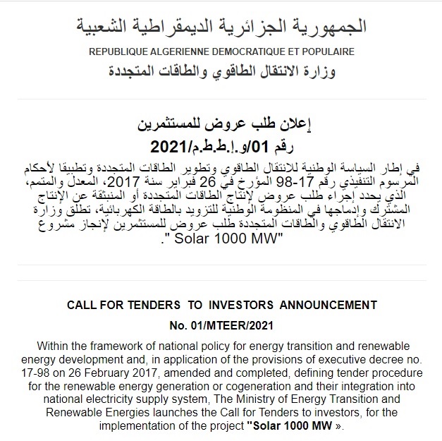 وزارت گذار انرژی و انرژی های تجدید پذیر الجزایر