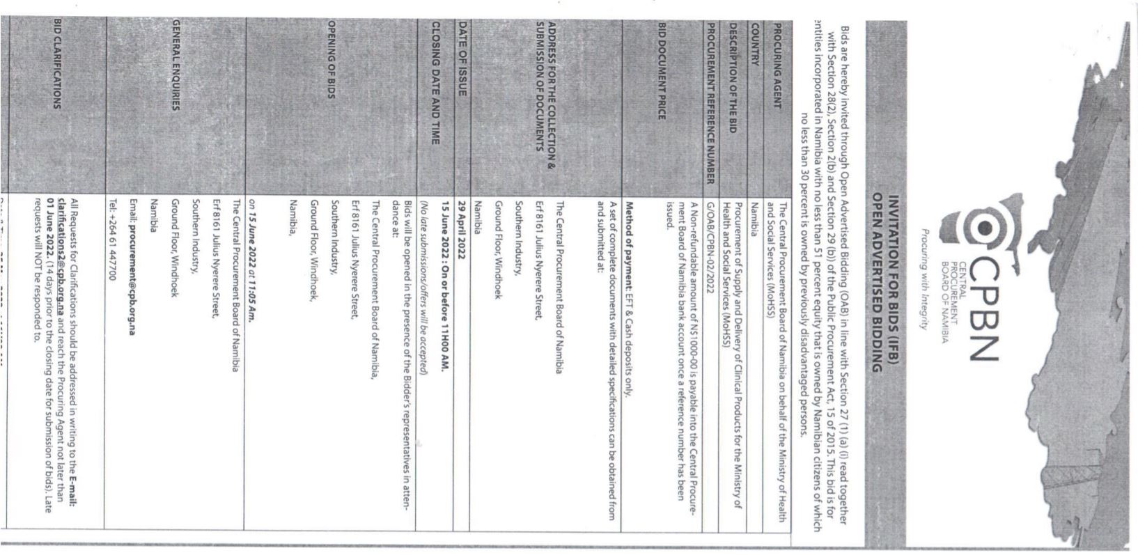 Supply and Delivery of clinical products for the ministry of health and social services (MoHss)