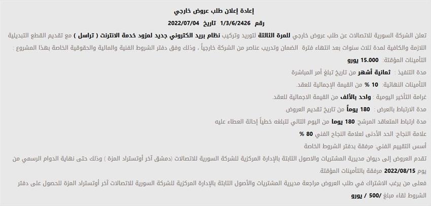 سوریه-نصب سامانه پست الکترونیکی