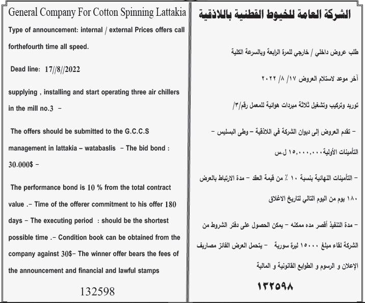 تورید و ترکیب و تشغیل ثلاثة مبردات هوائیة للعمل رقم 3 (تأمین، نصب و راه اندازی سه کولر هوای کارخانه شماره 3)