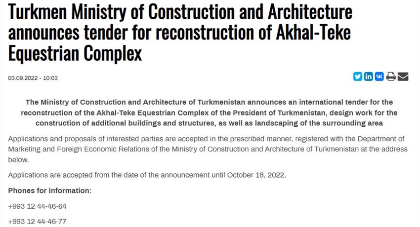 ترکمنستان - مناقصه بازسازی مجتمع سوارکاری آخال - تکه